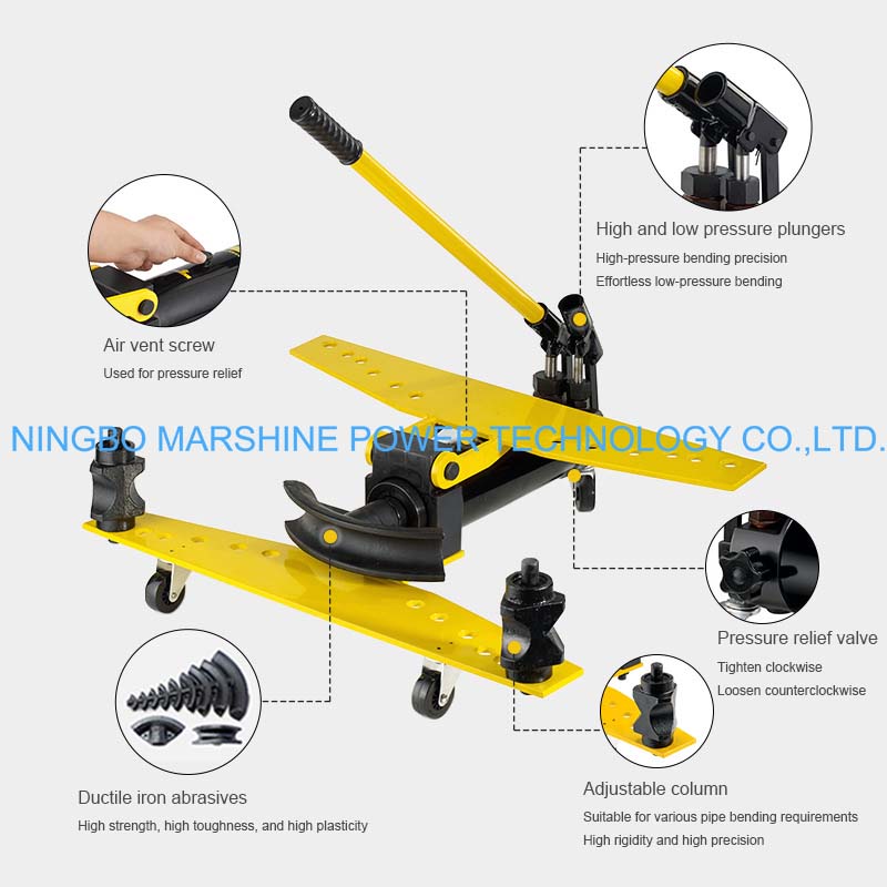 Bu MARSHINE SWG Manuel Tip Hidrolik Boru Bükme Ekipmanı, inşaat ve elektrik işlerinde vb. kullanılan çeşitli boru çapları için çeşitli bükme kalıplarına olanak tanır.